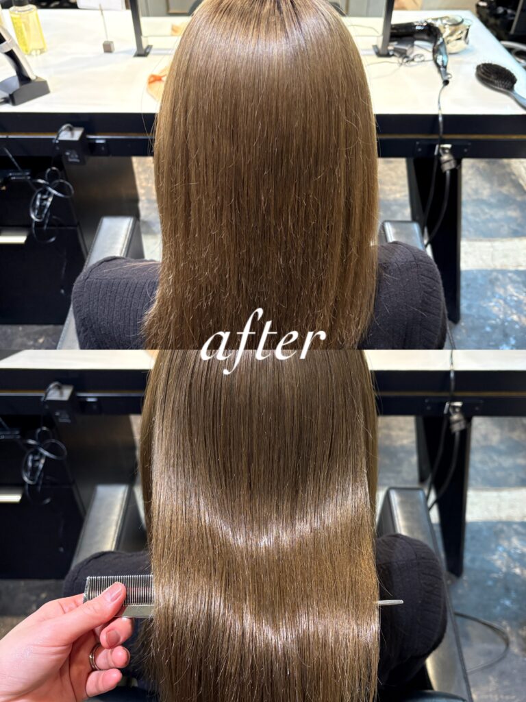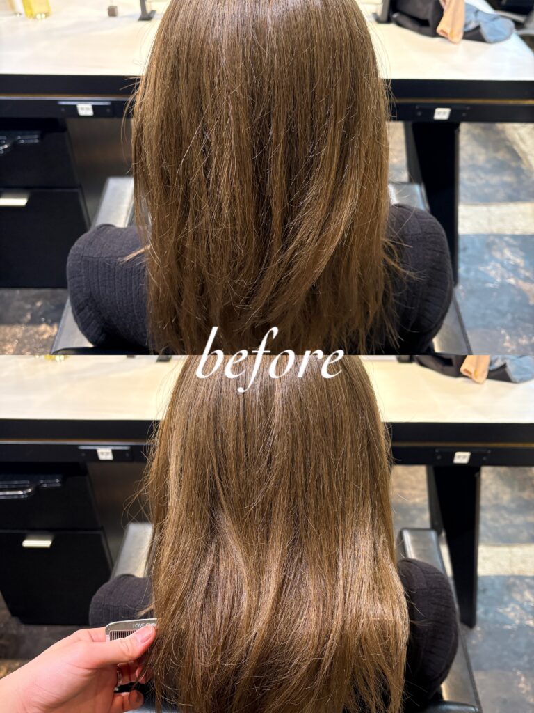 髪質は柔らかいのですがホワホワ広がる癖が気になるため自然な艶髪になりたいとのことでした。