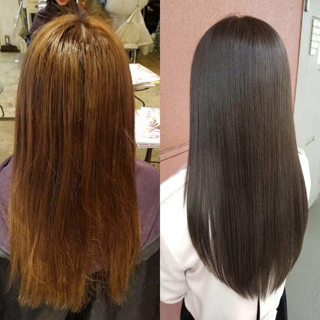 ・弱酸性縮毛矯正+カラー+髪質改善トリートメントのお客様