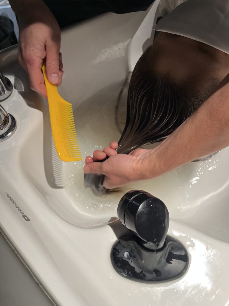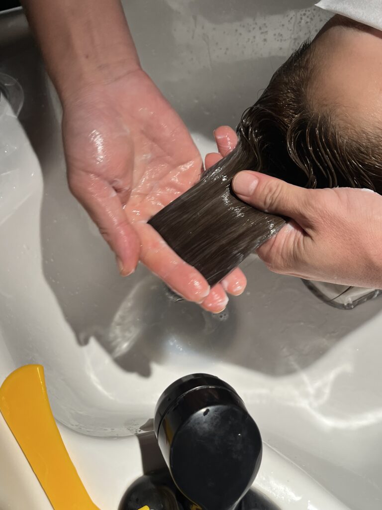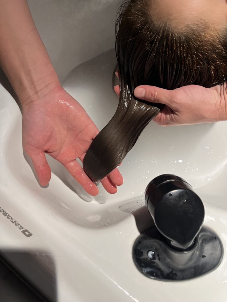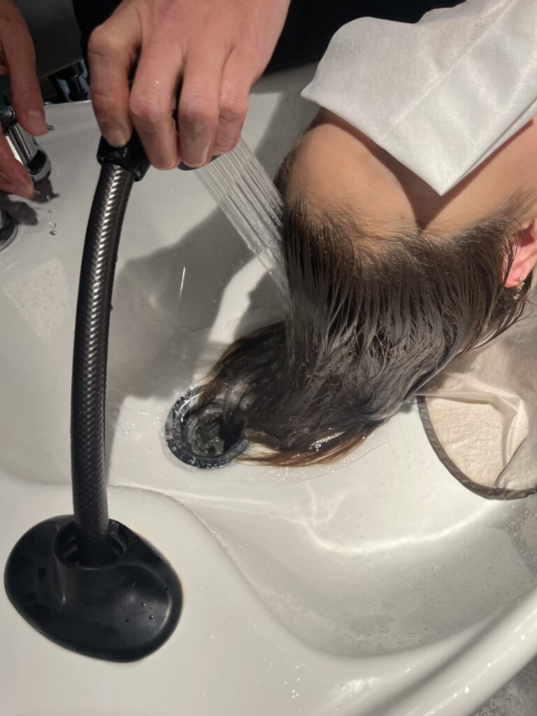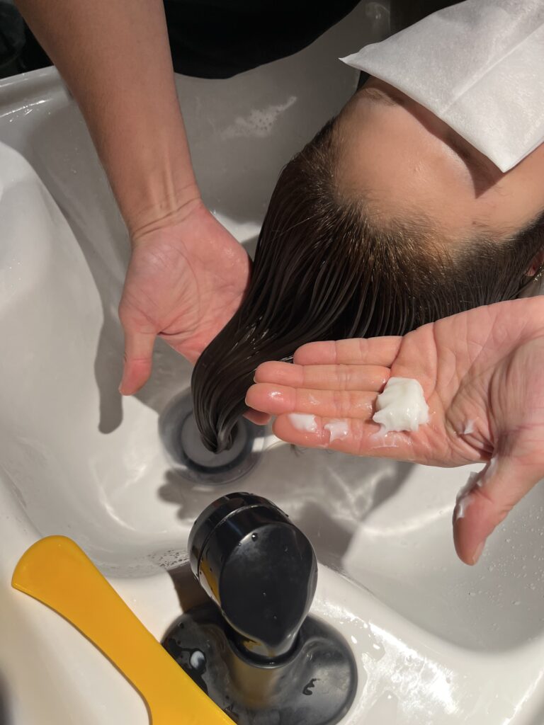 シャンプーをすすぎ終わったら、トリートメントの工程に入っていきます。