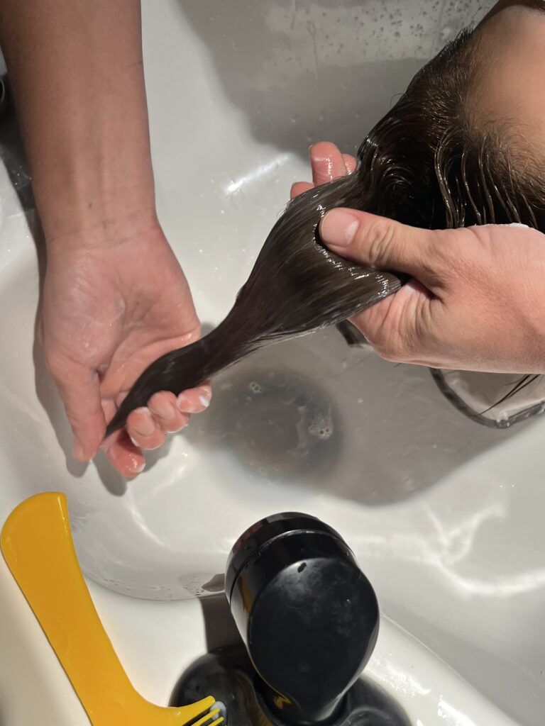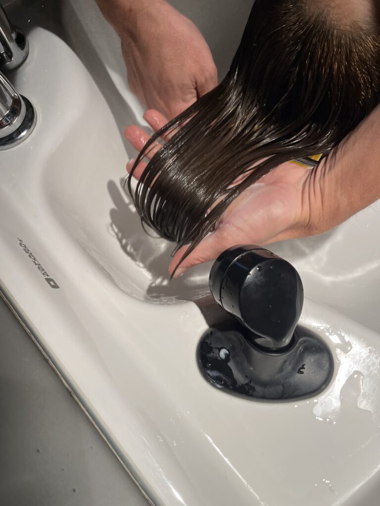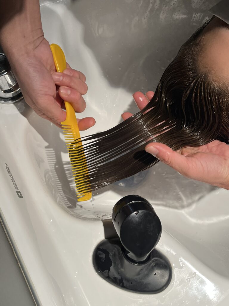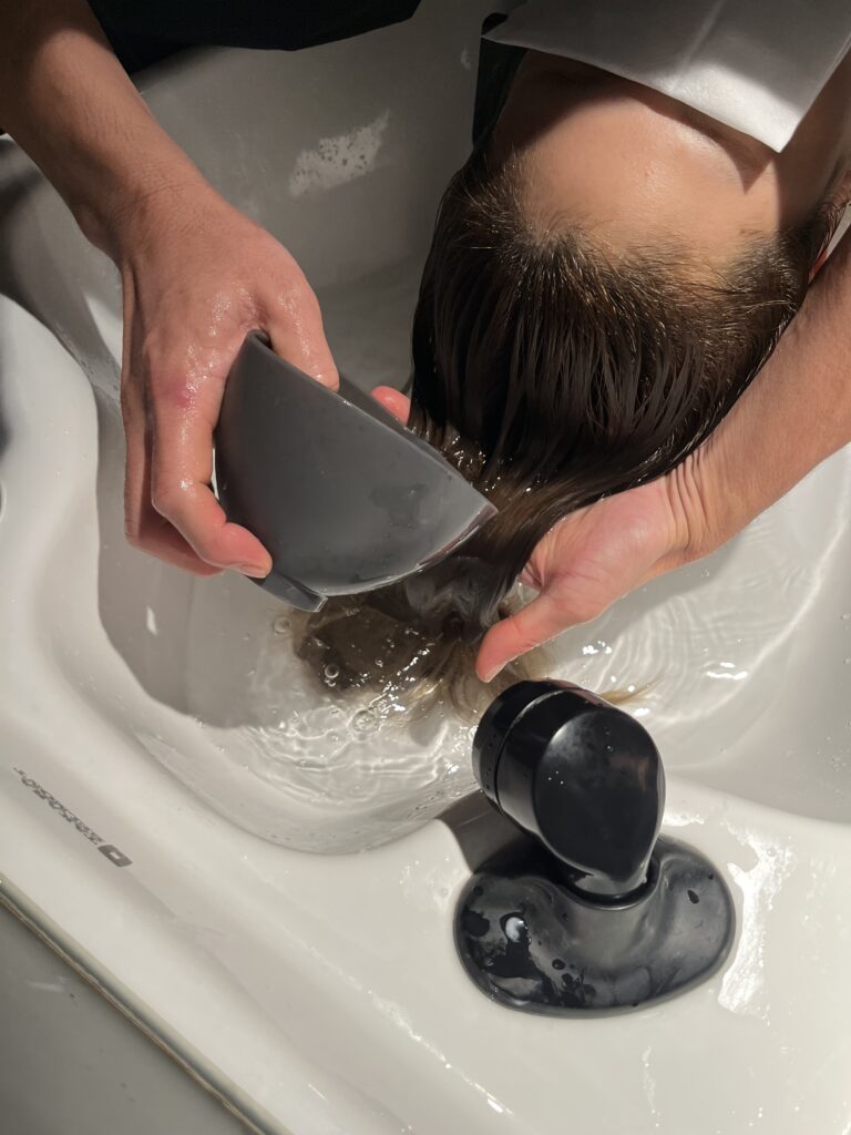 トリートメントをする前に、ぬるま湯でしっかりとすすいでいきます。