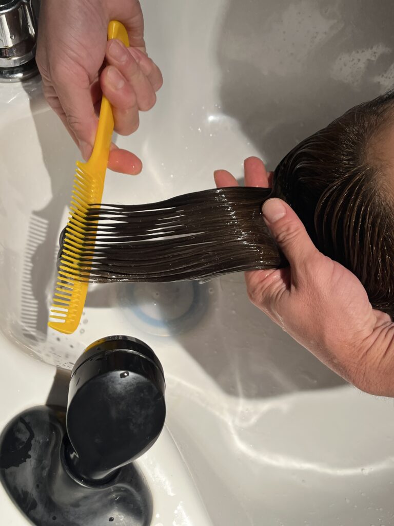 キューティクルを補修し、柔らかく指通りを良くしていきます。