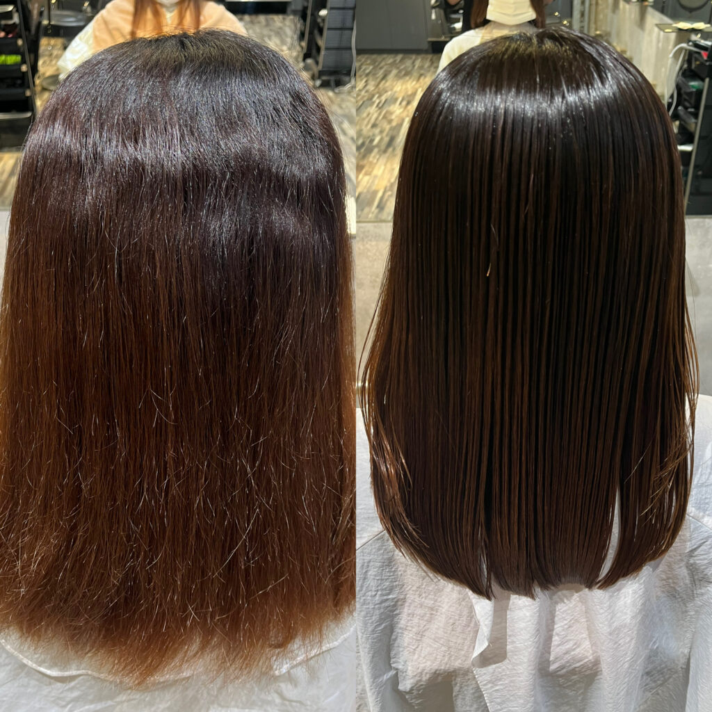こちらは縮毛矯正と髪質改善トリートメントで初めてご来店いただいたお客様。