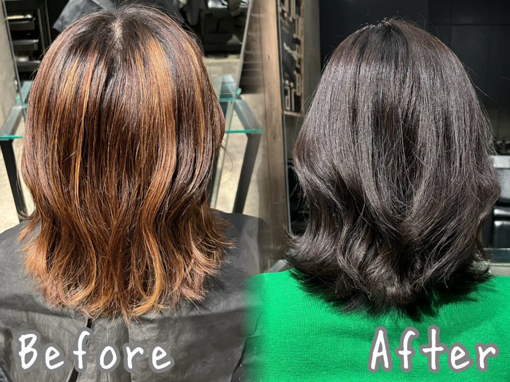 ハイライト履歴でも弱酸性カラーならダメージレスにトーンダウンが可能です!