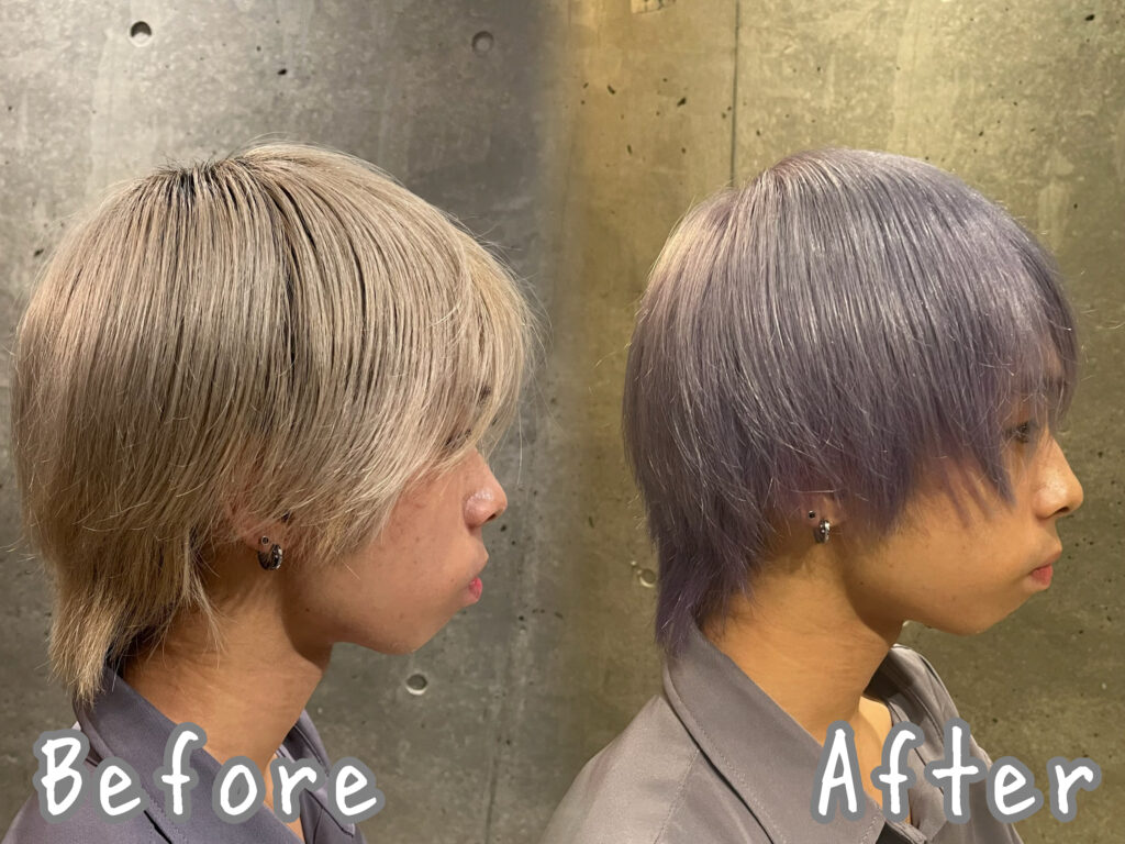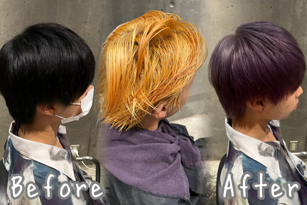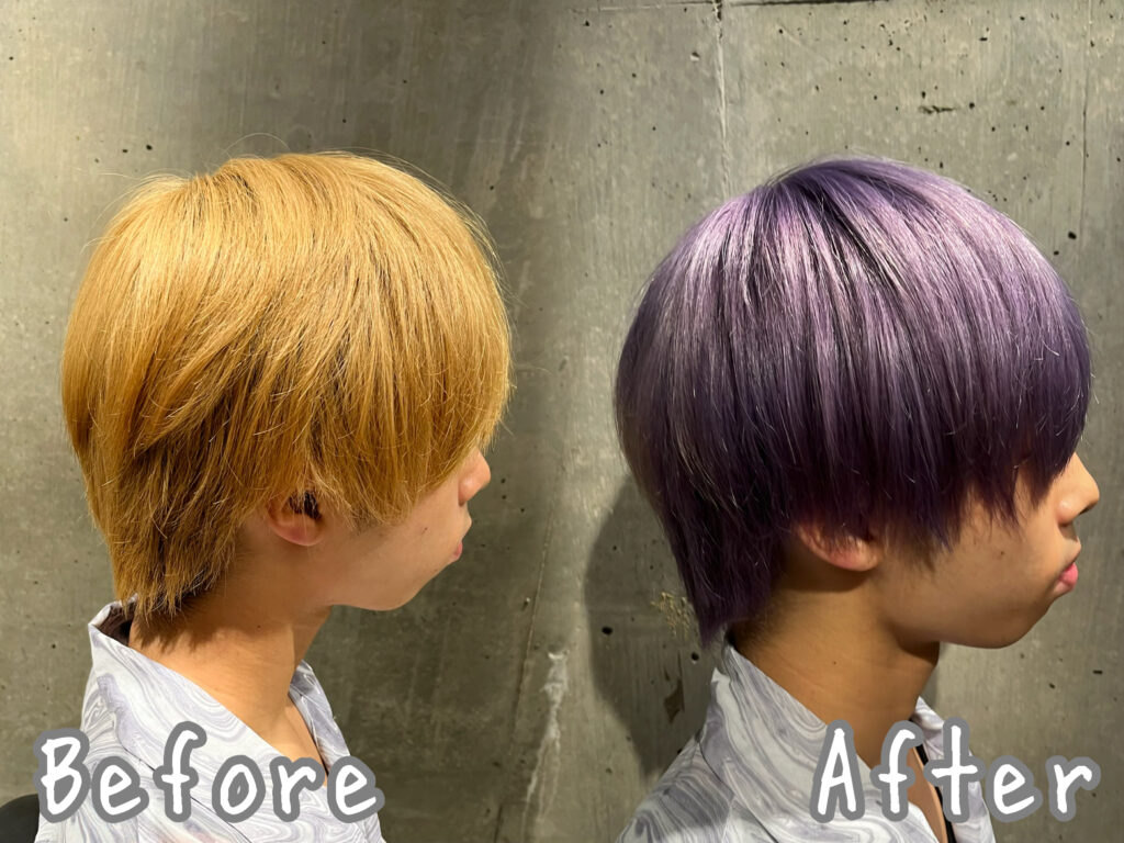 深めのパープルで黄味を抑えて綺麗な色落ちを狙います!