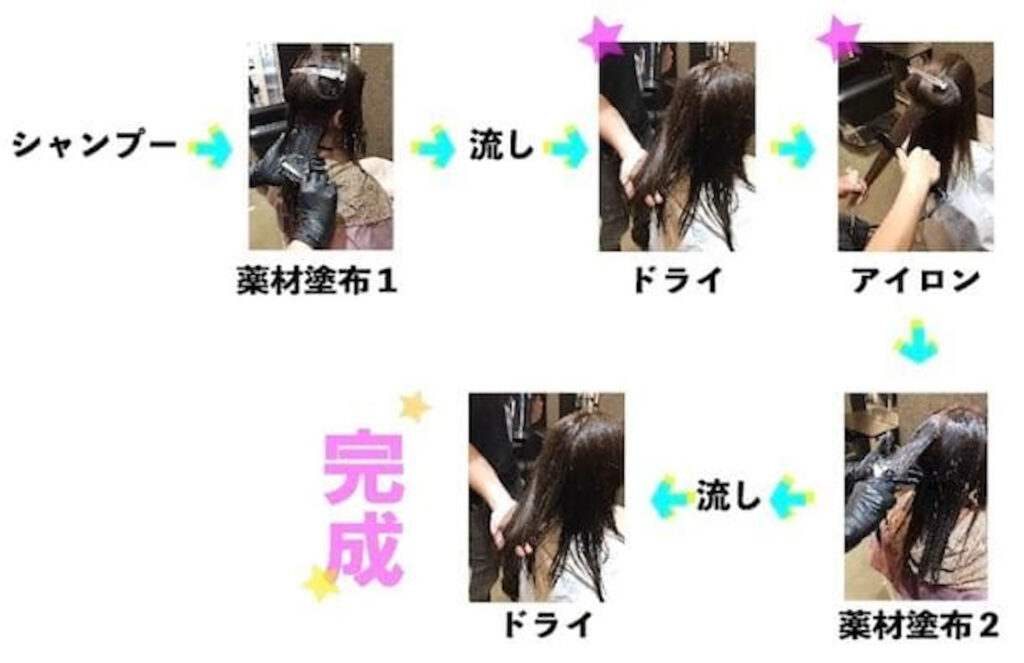 | 施術工程(熱処理) | 効果(くせ毛) | 目的 | ダメージ | |