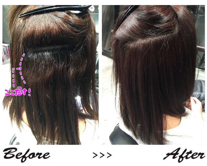 になってきます。まず髪は死滅細胞で出来ている為、1度傷んでしまったらどんなにケアを頑張っても元通りに治る事はありません。なので縮毛矯正をした時にどれだけダメージを抑えられるかで今後の髪の美しさを保つ力が変わってくるんです。ダメージを受ける程髪は傷みやすくなり縮毛矯正も取れやすい。逆に髪がダメージしていなかったら髪は傷みにくく綺麗な髪を維持できるんですね。