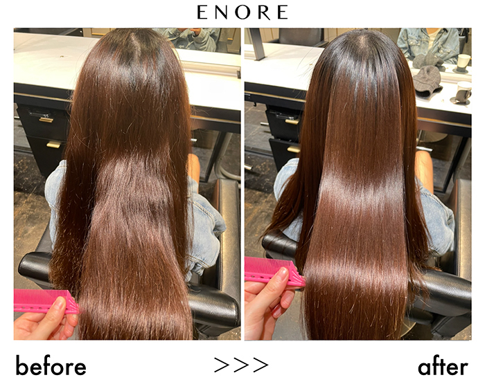 またエノアでは縮毛矯正の薬剤と技術を日々探求し続けている為、ただ髪に優しいだけではなく様々な髪質に合わせた薬剤調合で幅広い年齢・髪質に合わせた縮毛矯正を提供しています。
