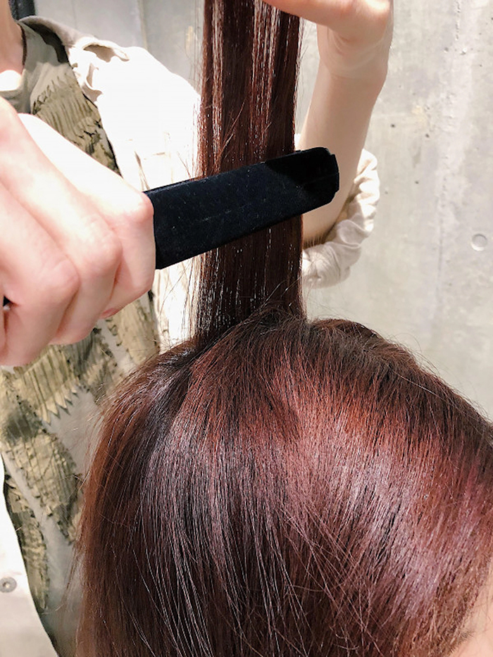 髪が傷んで毛髪内部に空洞ができヘロヘロな髪もぺったんこになりやすいです。またダメージレベルが高いと縮毛矯正自体が難しい事も。もし縮毛矯正が出来るにしても、仕上がりがガサついたりヘロンッとなってしまったりせっかくのストレートヘアが綺麗に見えにくいので、ふんわり仕上げる為の薬剤設定やアイロンワークだけではなく、処理剤による毛髪補修によって髪内部の状態を整え「もっちり」仕上げるのがポイントとなってきます。