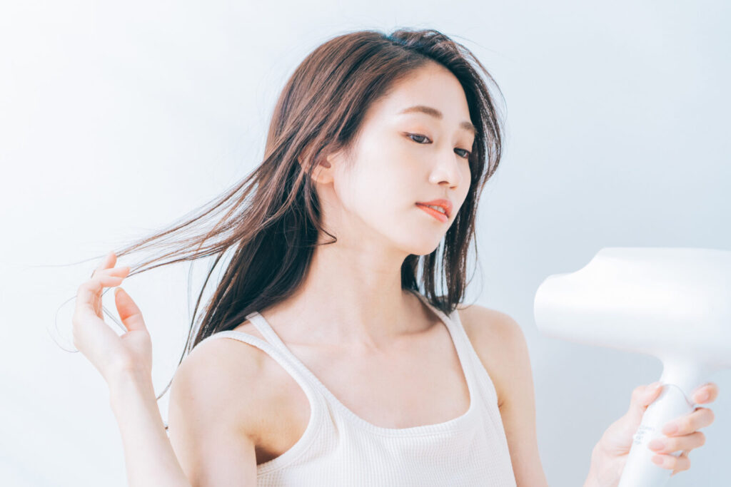 8〜9割ほど乾いたら弱温風にして形を整え、最後は冷風で軽く髪を冷やす