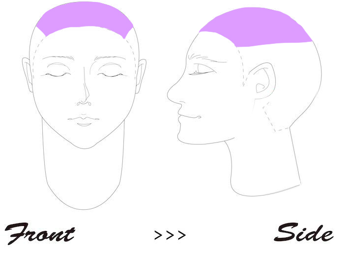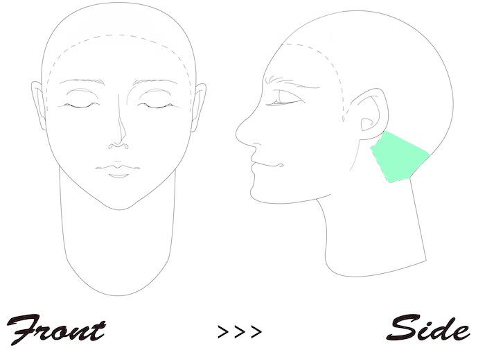 ※ハチ上とは?:「ハチ」は頭頂部と耳の間で一番出っ張っているところ。つまりハチ上は出っ張っているところからさらに上の範囲ということになります。