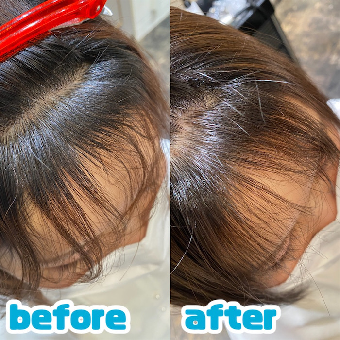 リタッチとは前回縮毛矯正をしてから時間が経ち、髪が伸びてきた時に根元のくせ毛部分だけ縮毛矯正をする技術になります↓