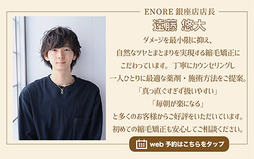 こんにちは!髪質改善と縮毛矯正が得意な美容院ENORE(エノア)銀座店店長遠藤です。
