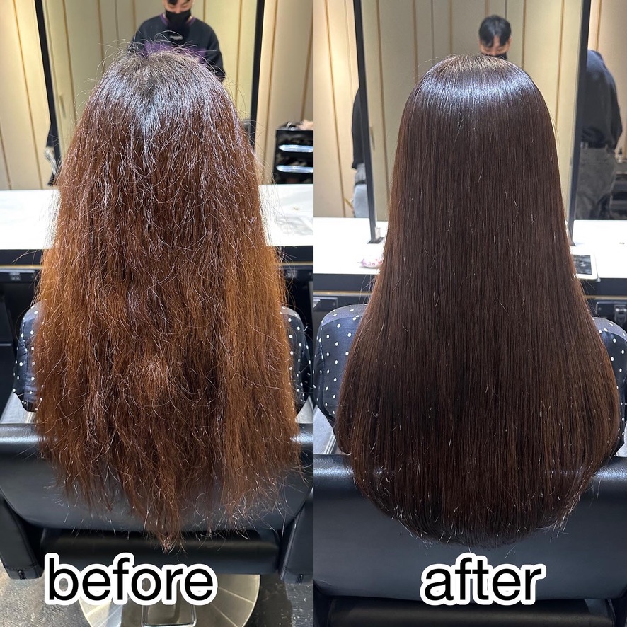 そんな状態になってしまっている方は、まず縮毛矯正をかけられる状態にする為に『髪質改善』で健やかな髪を育てるところから始めましょう。時間はかかりますが、コツコツ続ける事で傷んだ部分はカットで無くなっていき、どんどん美髪の範囲が広がっていきます。