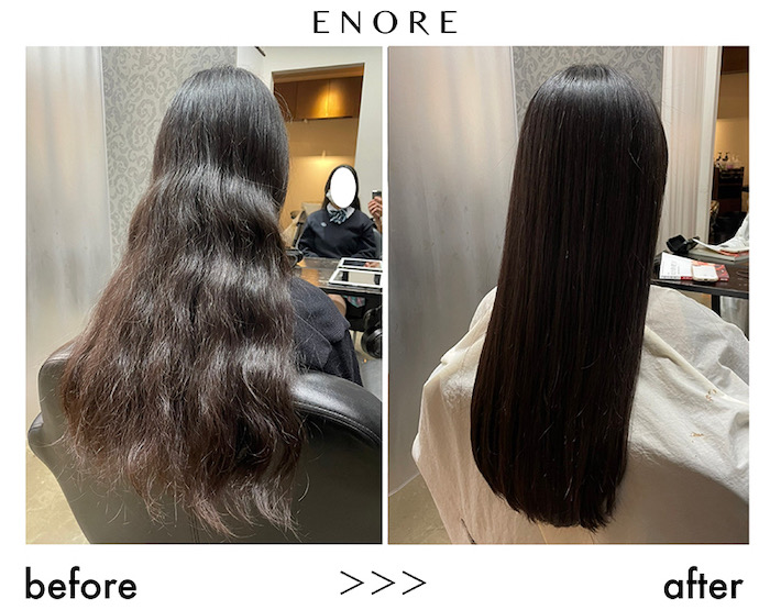 縮毛矯正は時間もお金もかかるメニューです。だからこそ失敗もしたくないし美しい理想のサラサラストレートを手に入れたいですよね。エノアはダメージレスで自然な仕上がりが魅力の弱酸性縮毛矯正を中心に様々な髪質やクセに合わせた縮毛矯正を研究。オリジナルの薬剤まで開発している美容院です。年間2万人のお客様がエノアの縮毛矯正を選んでいただいていますので、もしくせ毛でお悩みでしたらエノアスタイリストにお気軽にご相談ください。お客様の笑顔のために全力で施術させていただきます。お得なクーポンもございますので是非ご活用ください。