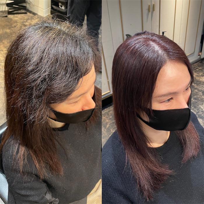 ※エノアでは縮毛矯正とヘアカラーの同時施術が可能ですが、髪の状態によっては別日での施術をお勧めする事もあります。ご了承ください。