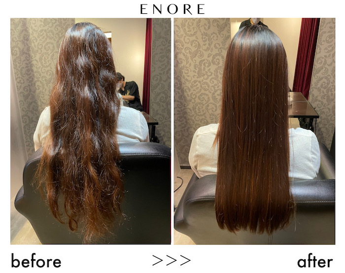 「縮毛矯正でどれだけクセ毛が綺麗になるのか?」修正なし!エノアに実際にご来店いただいたお客様の仕上がりをご紹介致しますね!縮毛矯正施術にはエノアのオリジナル薬剤を使用しています!