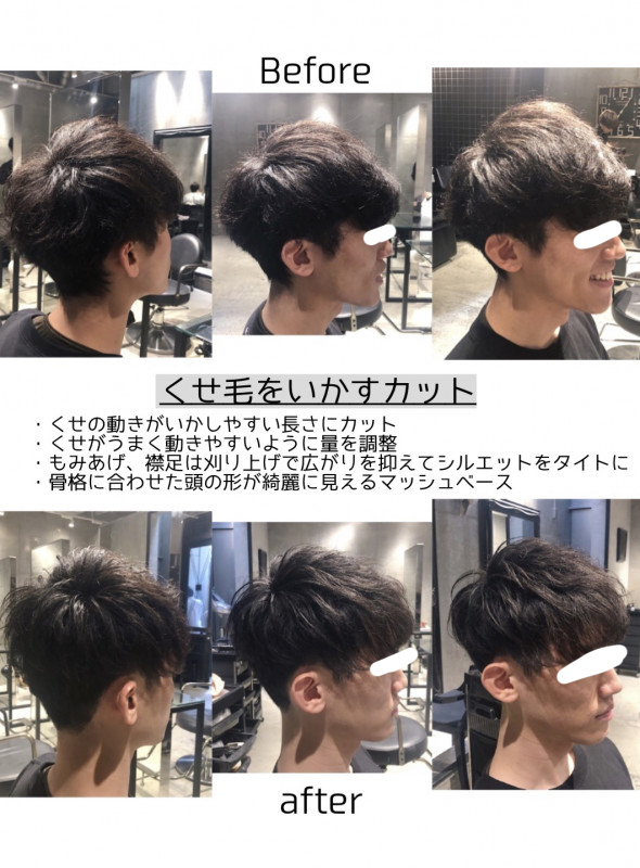 クセが強く気になって仕方ない場合も髪全体に縮毛矯正をするのがおすすめです。ただここでもやはり「自然な仕上がり」はとても大切!また男子は髪がしっかりとしていて硬い子も多く、クセが強いとある程度パワーのある薬剤を使用しないといけない場合も多いです。そんな子は一般的に自然に仕上がりやすいと言われている「酸性ストレート」だとあまり上手く伸びない事も。なのでいろんな髪質やクセの強さに合わせた薬剤を選んでかけてくれる美容院でかけてもらうのがおすすめです。上手な美容師さんであればある程度パワーのある薬剤を使用しても結構自然な仕上がりにしてくれますよ。