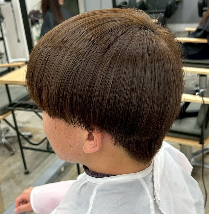 サラッとしたまとまりと艶感が特徴的なマッシュは縮毛矯正をした髪にもやりやすいヘアスタイルです!