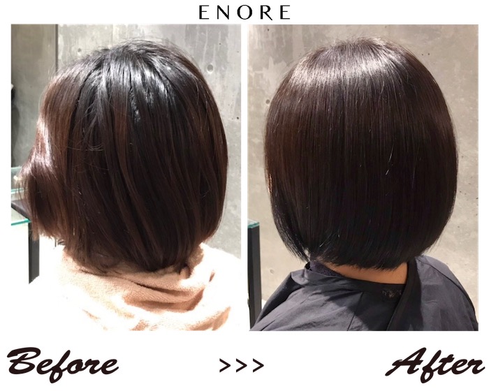 ↓エノアでは縮毛矯正ボブでしたら「弱酸性縮毛矯正」がお勧めです。