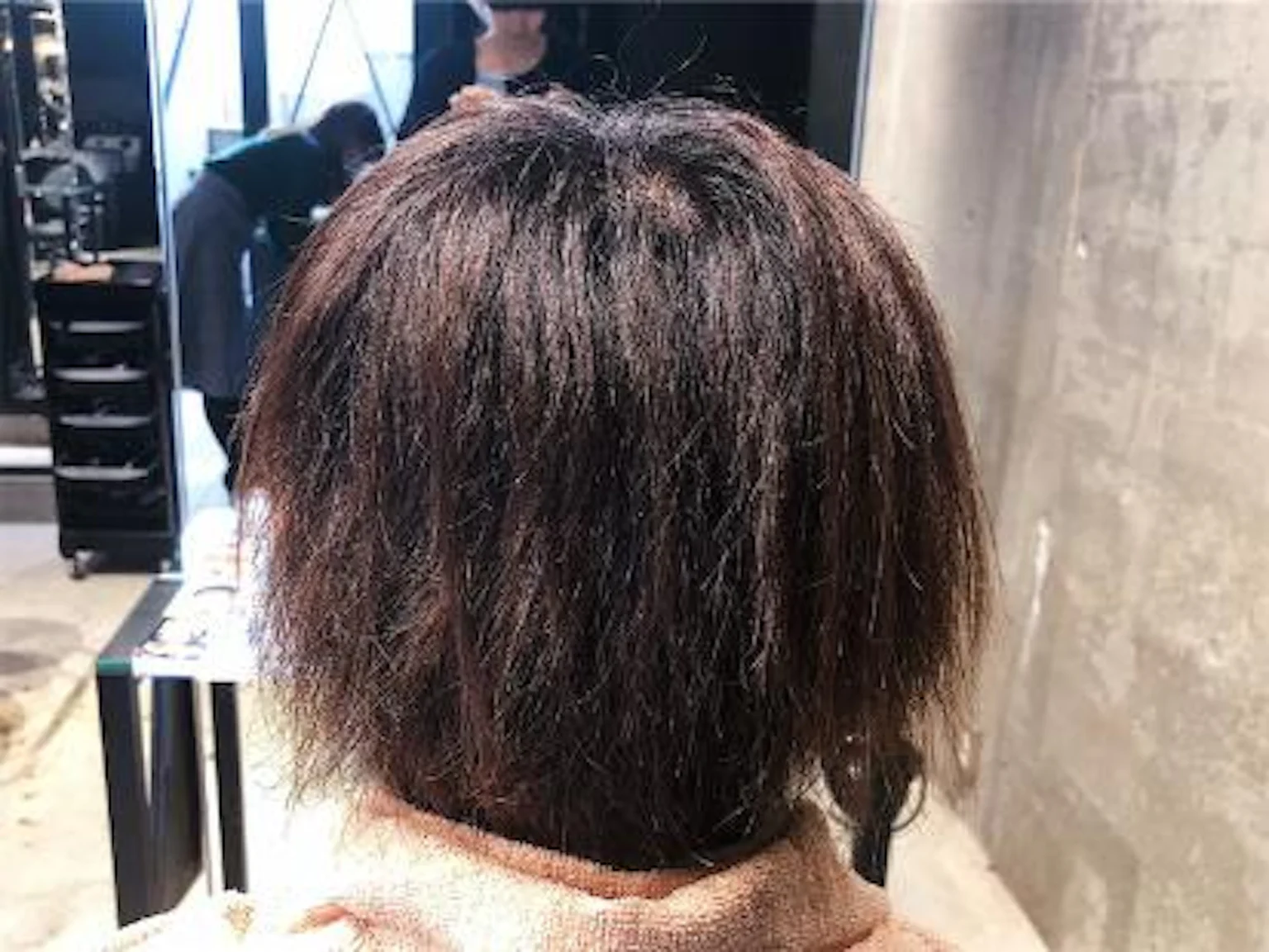 →ダメージ毛や産毛(元々細く体力のない髪)、エイジング毛で起きやすいです。かけ直してもまたうねりが出てしまう可能性があります。