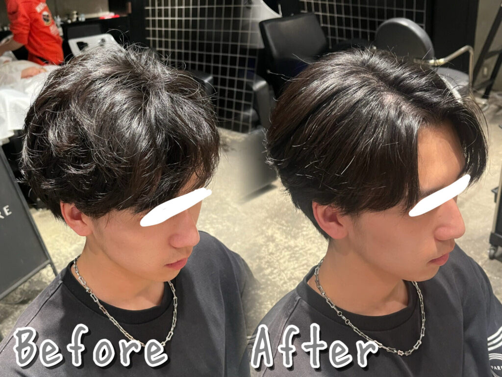 お客様のメンズ縮毛矯正「ビフォーアフター」