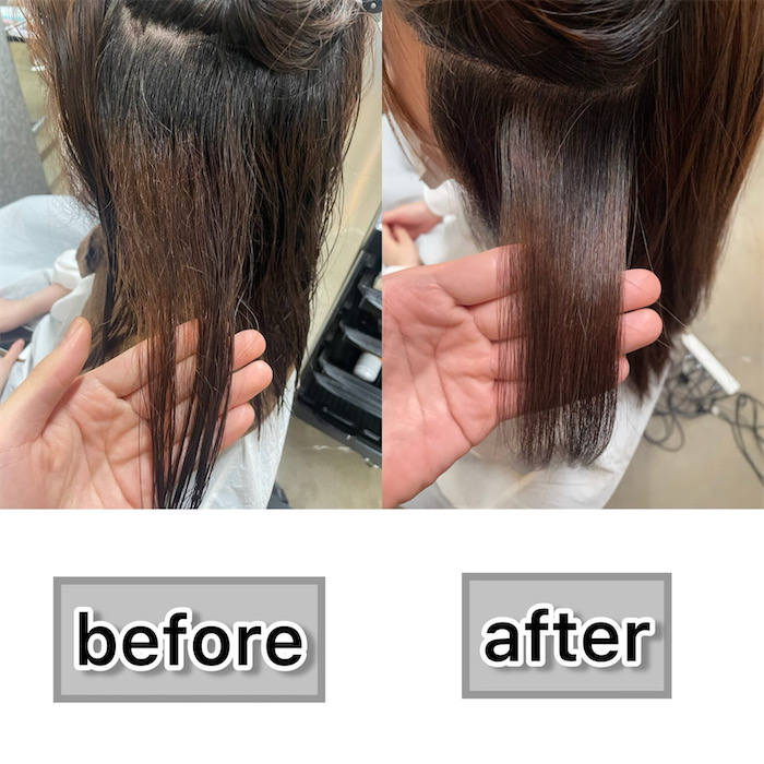 軽度〜中度でしたらトリートメントを行うだけでも手触りが一時的に良くなるので、だいぶ髪が扱いやすくなりますが重度になってしまうとトリートメントの効果をあまり感じられなくなり本当に切るしか方法が無くなってしまいます。