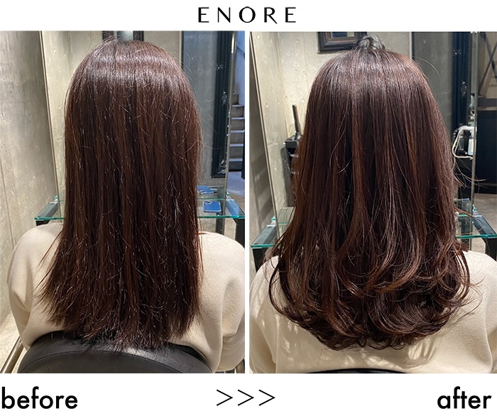 ※縮毛矯正後の髪の状態を早めに安定させたい方は、「残留オキシ」「残留アルカリ」などの残留物を除去できるエノアの髪質改善トリートメントもおすすめです。