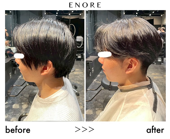 こちらのお客様も髪の調子が良かった為、2ヶ月ですが今回はメンズの曲がる縮毛矯正(ストパーカール施術)をさせていただきました。センターパートで綺麗に流れるのでスタイリングもしやすく一気にオシャレ度が増します!